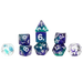 At its core, you’ll find a classic 7-die RPG set, beautifully layered in navy blue and teal, evoking the balance between destiny and danger. But Daggerheart introduces something new—the Hope and Fear dice, two custom d12s that bring tension and triumph to every session.