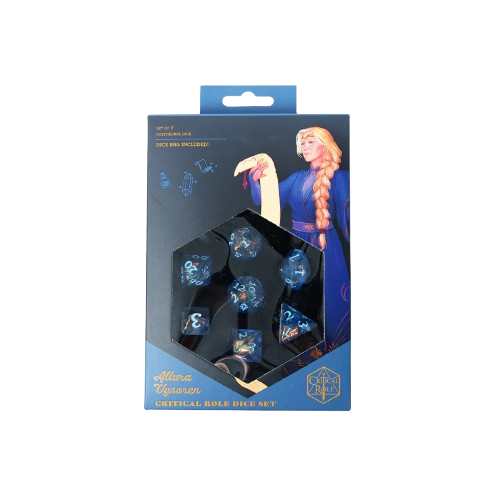 Darrington PressChannel your inner arcanist at your next game night! Inspired by Allura Vysoren, this gorgeous dice set is iridescent blue with light blue debossed...
