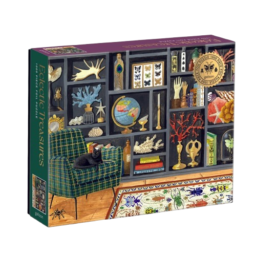 FaireThis sophisticated 1000-piece foil puzzle showcases Mélanie Voituriez's intricate "Eclectic Treasures" artwork, featuring a meticulously rendered c...