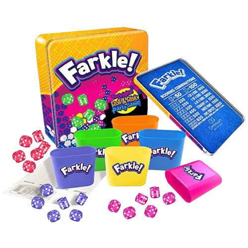 FaireEnjoy a classic game of push your luck with Continuum Games Farkle Deluxe. FEATURES This deluxe set features a collectible tin, scorepad and 6 co...