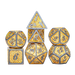 Set of 7 polyhedral dice in Brushed Gold solid metal.