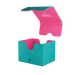 “Let me hold even more for you!” – The SIDEKICK 100+ XL is made to fit 100 double sleeved cards in extra Thick Inner Sleeves. Elegant outside material in TEAL Nexofyber+ with soft PINK microfiber inner lining create a new striking color combination! The Convertible line is designed to present cards in unique ways. Remove the lid, attach it to the bottom or start tilting your box in a wide variety of ways. Powerful magnets keep it safely closed.
